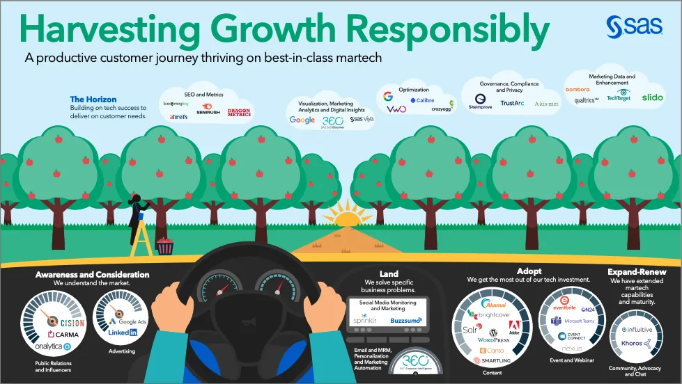 and SAS Institute using a drive into an apple orchard as an analogy for their stack (and customer journey).