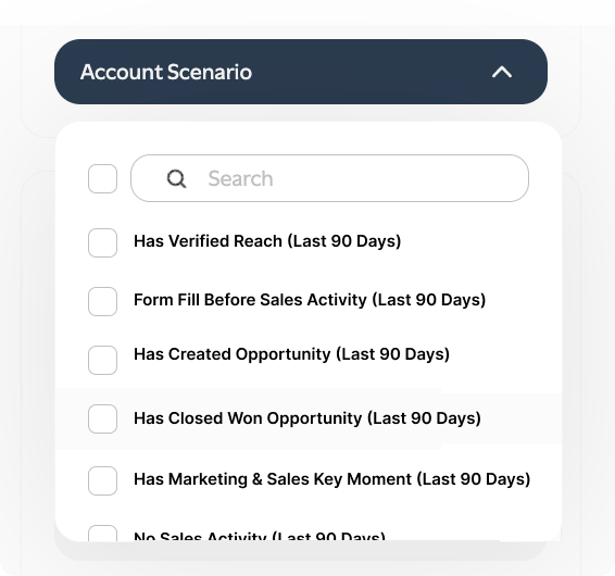 3) Account Scenarios: We’ve all heard the common questions marketing & sales teams are asking. “Which accounts had closed won opportunities?” “Which accounts had form fills before sales activity?” “Which form fills were attributed to paid media channels?” “Which accounts have high intent?” The list goes on, but that doesn’t mean answering these questions should be hard. Our solution, “Account Scenario” filtering, is tailored to streamline your account list identification process. Explore lists of accounts based on common search criteria, if we don’t already have the scenario covered we’re equipped to add more based on your feedback!