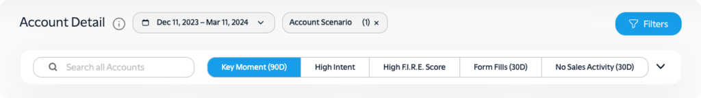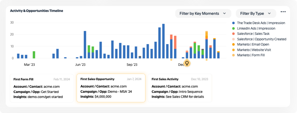1) 💡🌟 Key Moments: We’re thrilled to introduce a powerful enhancement designed to unveil pivotal moments in the account journey. Aptly named “✨ Key Moments” , this new filter uncovers those “needle in the haystack” moments during the account journey—such as the first marketing activity, form fill, or sales opportunity—finding these data points has never been easier.