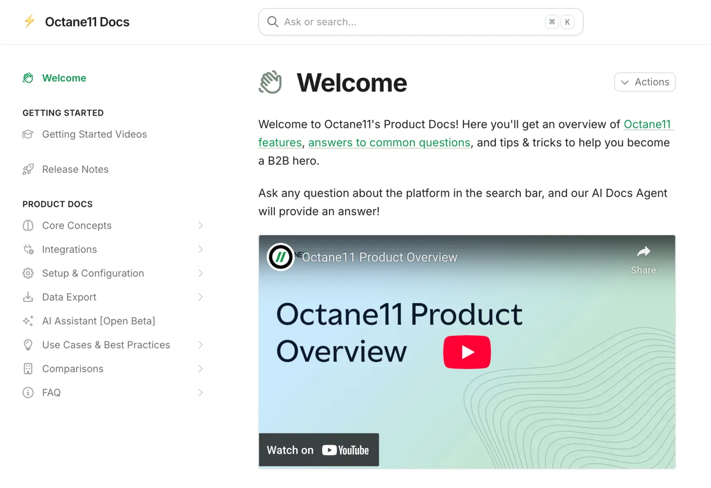 3) Product Documentation Launch: Our new product documentation site is officially live. It includes common FAQs, integration guides, how-to walkthroughs, and deeper dives into Octane11 tools and workflows. The product documentation site has built-in AI search so you can ask questions there (or via the AI Assistant throughout the app) about any aspect of the platform and receive intelligent, contextually-relevant answers instantly.