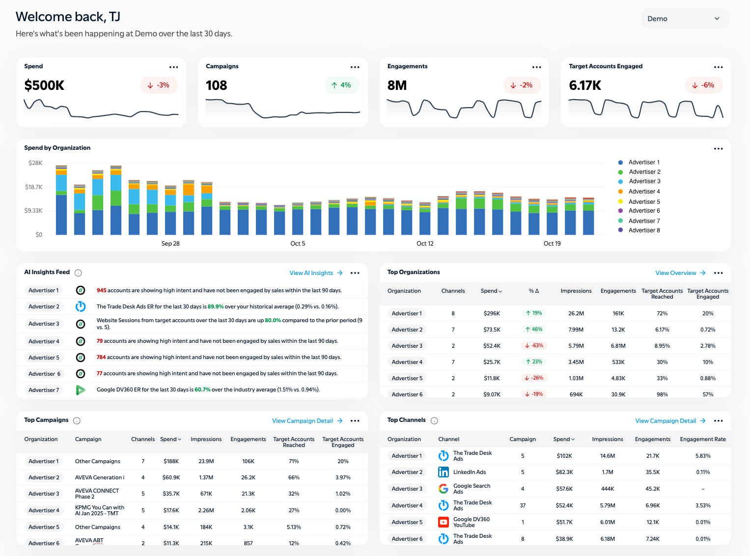 4) 🏠 New Agency Home Page: Our Home Page dashboard has been upgraded for Agency users to make it easy to monitor all of your advertisers in one view. Perfect for multi‑brand teams managing multiple clients or business units. Get high-level insights across clients and campaigns and drill down deeper to view individual client details.