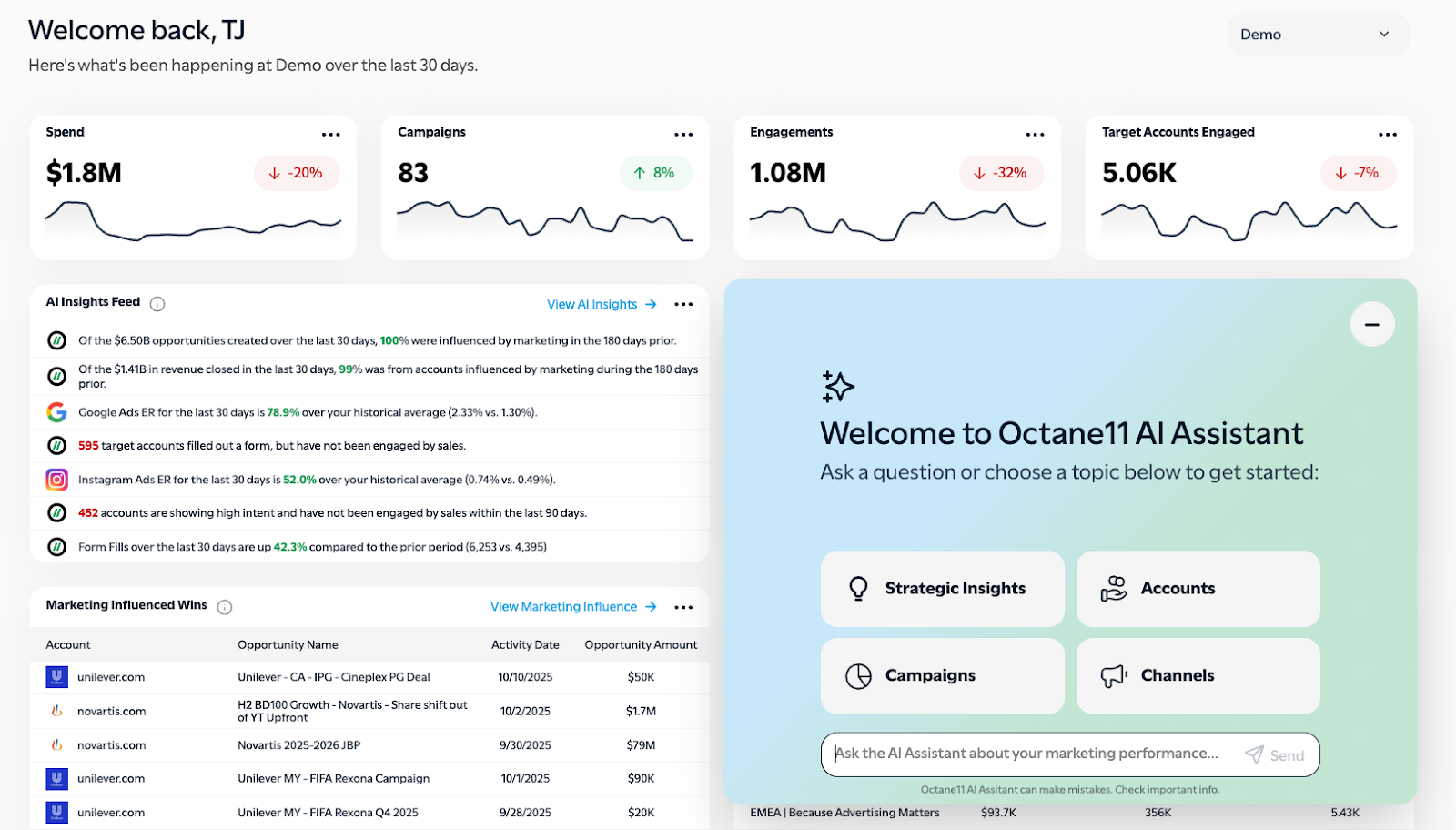 This quarter’s release brings even more intelligence and automation to Octane11—helping B2B marketers and agencies go deeper on insight, efficiency, and scale. From a great new LinkedIn integration that expands account-level visibility, to AI Chat and a new Incrementality Analysis that all make analytics more intuitive and actionable, we’re continuing to connect the dots across every channel. Whether you’re managing multi‑advertiser programs, testing new target segments, or exploring AI-powered workflows, these updates make it easier than ever to understand what’s driving results and take action faster. Here are some highlights!
